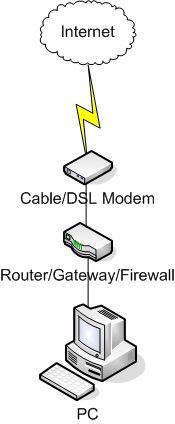 Scenario 2: PC -> gateway device -> DSL or cable modem