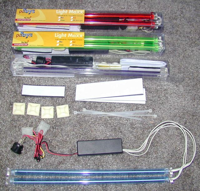 PCToys Dual Cold Cathode Light Kit Date: November 28th, 2002E-mail this article to a friend Rating: Excellent! Review:Introduction For decades, computers have been inhabiting boring, ugly beige metal boxes. Over the last few years, however, a new trend has finally evolved where both manufacturers and even more so users have started to express their creativity by customizing (called "modding" in computer slang) their computer cases. Modifications range from rounded cables over unique fan grills to custom paint jobs. A popular mod is a plexiglas window on the business side of the case combined with special lighting inside the case to show off the goodies inside. When case light kits first appeared on the market, they usually had one or more negative attributes, including weak light, emitting a considerable amount of heat, being somewhat bulky, expensive, and/or very fragile. The technology has evolved and improved quite a bit, though, and now there is a case light kit available that has none of the above mentioned downsides. PCToys Dual Cold Cathode Light Kit PCToys generously sent me a few of their dual cold cathode light kits to test. These kits come in four colors: Red, green, blue, and UV.