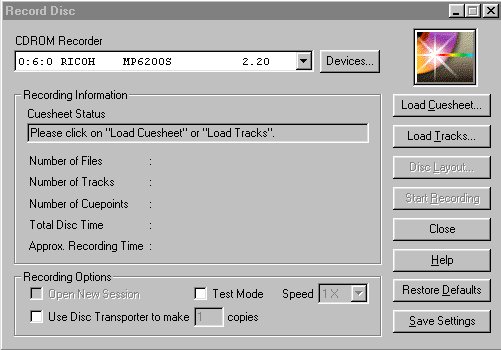 Now you are probably thinking "I'm going to use load track." You may wonder why anyone would use load cue sheet. In fact, why even use this program? If I wanted to do a track by track recording, I'd just go back to Easy CD Creator. The answer is, cue sheets provide for a powerful way to control how the data is copied to the disc. In the next section, we will take a look at how cue sheets are written and what they can do.