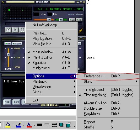 - While with Winamp's main window in focus, press Ctrl + P to bring up the properties menu (right click would also work).