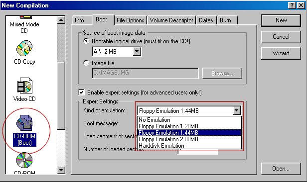 [COMMON] This file is much more readable. In the [menu] section, three choices for the menus are defined. Each menu item is associated with a specific section of the file. For example, if Start computer with CD-ROM support is selected, the system will proceed to load stuff in the [CD] section of the file, after it loads the [COMMON] section. Basically, anything under the COMMON section is loaded regardless of which configuration is chosen. Everything else is pretty obvious if you've ever dabbed in config.sys files. With the understanding of these basic concepts behind multiboot startup files, you should be able to modify the Win98 boot disk to suite the needs of your bootable CD-ROM. Be sure to make sure that everything works before you write it to the CD.