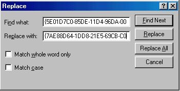 - Select Edit / Replace. Paste the GUID from the clipboard into the Replace with field by right-clicking in the field and clicking Paste.