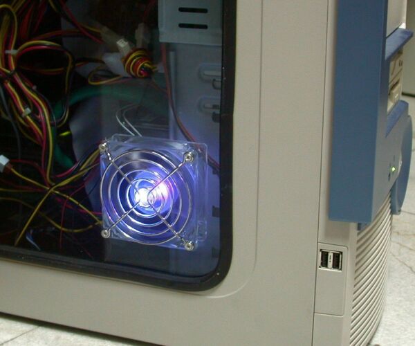PCToys Crystal 80mm Fan, Speed Case Thumbscrews Date: July 29th, 2002 E-mail this article to a friend Rating: Excellent! Review: PCToys recently furnished me with a few of their PC toys to install in my new case. Since I recently switched from a full tower that was difficult to cool with all my stuff in it to a plexi-sided case, I decided to try out one of the Crystal 80mm Fan with Blue LED lights and built in Automatic Thermal Speed Controller as well as some of their thumb screws. Well, everything arrived (in 8 days I might add...very fast to Thailand) and I removed the black fan that had been in the plexi side (added it to the front panel to give me two fans pulling air in side by side up front). It was a snap to install using the screws that were already in the case, but the screws that came with the fan would have allowed you to install it with the included guard or as a standard case fan as well. There is a thermal probe, which I chose to place in the case near the video card.